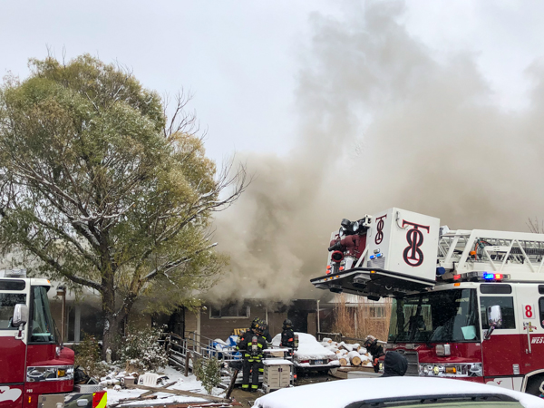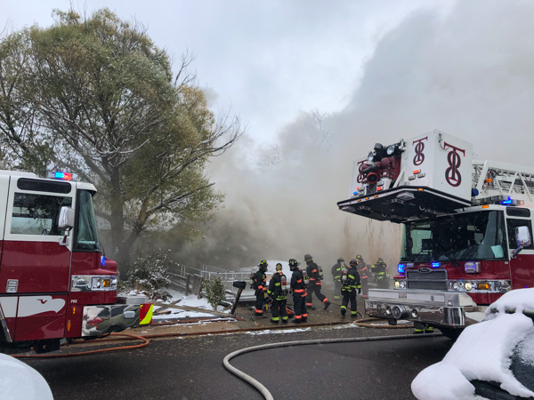 At 13:44 on November 11th, 2018 West Metro Fire Rescue was dispatched by JeffCom to a structure fire in the 1300 block of S. Depew St. in Lakewood. Dispatch reporting that 911 caller reporting flames showing and possible patient inside. Engine 7 arrive on scene with smoke showing with a working fire on the Charlie side of a small single story residential structure, and securing their own water supply in the offensive strategy with life safety. Medic 11 with Engine 8 pulled two 1 3/4 lines off Engine 7 for fire attack, and Tower 8 started primary search. District 2 arrived and assumed command on the Alpha side, Engine 1 assigned as RIT on the Alpha side and Medic 11 with Medical. Crews worked heavy fire inside the front door, and SAM 1 advised that fire vented the roof from the attic space. The homeowner was able to get out of the house, and was transported by Medic 11 to a local hospital. Command requested additional medic to the scene, Rescue 10 assisted Engine 7 with fire attack. Bureau 7 reporting a partial roof collapse on the Charlie side, and a withdrawal was requested from Command, and from offensive to defensive ops started. The homeowners dog appeared at the front door about two hours after crews first arrived. No other injuries were reported, and the fire was possibly caused by a wood stove.