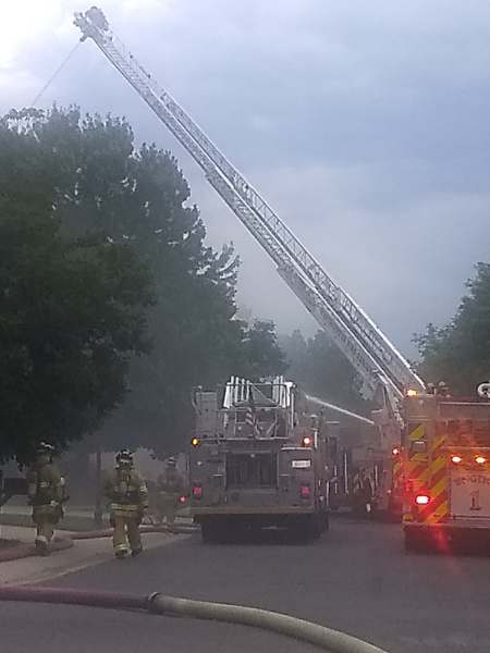 Approximately 15:54 on June 30th, 2019 Westminster Fire Department responded to a structure fire in the 2700 block of W. 111 Loop at Clay St. in the Legacy Ridge area. Westminster Communications Center advised units en route that 911 callers reporting a possible second house on fire. Westminster Police Department arrived first on scene to a fully involved house fire with flames threatening a second house. Engine 4 arrived to a two-story single family structure with heavy fire from the garage, secured their own water supply with 400′ of 5″ hose, and pulled 1 3/4″ line for fire attack. Truck 6 arrived and set up their stick for fire master stream operations in the defensive strategy. Battalion 1 arrived on scene and assumed command, and assigned Engine 1 to pulled a second line off Engine 4. Engine 2 arrived and assisted with fire attack, and advised command that the gable collapsed on the Delta side, and Medic 2 set-up for rehab. Command requested 2 additional engines and one medic to the scene. Mutual Aid was called in from North Metro Fire Rescue District and Thornton Fire Department. Medic 6 assisted Medic 2 with rehab operations. The fire was put under control around 16:30, and crews worked an extended time with hot spots and overhaul. All occupants were able to safely evacuate the house. The cause is under investigation. The fire also happened on the day of Lt. Tracy Haze’s final working day, he served as a firefighter for the City of Westminster for 34 years.
