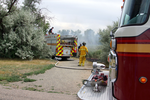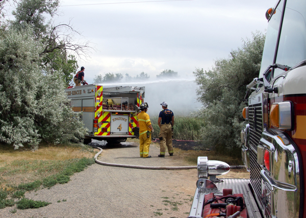 On July 4th, 2020 Westminster Fire Department & North Metro Fire Rescue District responded to the vegetation fire in the Open Space at W. 120th Ave. & Lowell Blvd. Crews arrived to the Historic Metzger Farm with structures threatened from fire showing from the open space. Units made a stop before any structure was damaged. Engine 66 supplied Engine 4, and they operated the master stream of fire in the cat tails. The fire cause is under investigation.