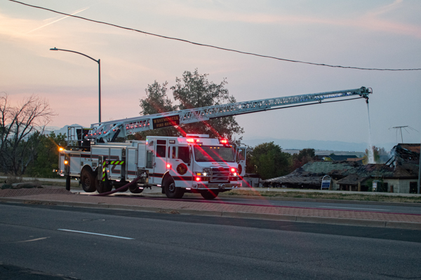 On October 3rd, 2020 at approximately 16:05 Westminster Fire Department was dispatched to a structure fire in the area of 7100 W. 92nd Lane. Engine 3 was first on scene with a working fire. A 2nd alarm was struck. Engine 3 connected their own water supply and pulled a line for defensive operations. Fire extended into the attic and a portion of the roof collapsed. Truck 2 arrived on scene, connected their water supply and deployed an aerial master stream. Engine 5 arrived and pulled a second line off Engine 3. Battalion 1 arrived on scene and assumed command. 92nd Ave. was shut down in both directions as crews had to run a supply line across the road.