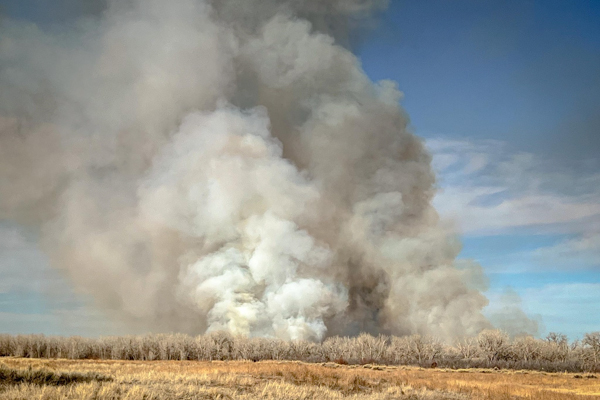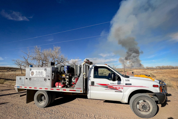 Around 14:30 on March 2nd, 2022 Pueblo County Emergency Services Bureau (ESB) Fire Team was dispatched by the Pueblo County Sheriff’s Office Emergency Communications Center to a smoke investigation in the area of Broadacre Rd. and Doyle Rd. Callers reported black smoke southeast of this location about a mile away. As the fire grew smoke could be seen across the majority of Pueblo County and multiple 9-1-1 callers reported the smoke. Due to the size of the smoke column, mutual-aid was immediately requested from several departments. Crews arrived on scene in the 6200 block of Huerfano Rd. to find a large brush fire burning in the Huerfano River bottom. There were some structures on the east side of the fire and crews set up to protect them. West and East divisions were set up as crews began initial attack but due to the fire being in the river bottom access was tough. The Colorado Division of Fire Prevention & Control MMA flew the fire around 16:30 and mapped the fire at just over 130 acres and marked the two major heads of the fire. Crews remained on scene until 21:00 and then shifted to night operations until sunrise. The cause is under investigation and no injuries were reported. Additional information provided by Code 4 Photography