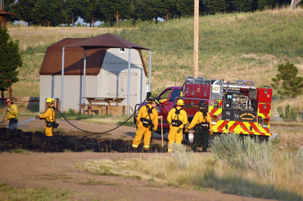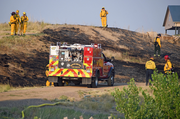 On July 31st, 2024 at approximately 18:25 South Metro Fire Rescue was dispatched to a reported vegetation fire at the Arapahoe County Fairgrounds, 25690 E. Quincy Av. Dispatched advised responding units that they received reports of a small, slow moving brush fire with approximately five foot flames. Crews arrived on scene and found a fire about the size of a football field. Firefighters were on scene about forty five minutes extinguishing the fire and mopping up hot spots. Officials believe the fire was caused by kids igniting fireworks.
