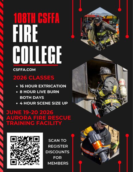 CSFFA Fire College June 19 - June 20 Aurora Fire Training Center 25950 E Quincy Avenue, Aurora, CO, United States