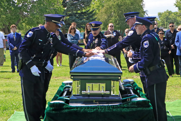 The funeral service for Northglenn Police Department Detective Paul Gesi was held on August 19th, 2025 at the Brave Church, 3800 E. Hampden Ave. in Englewood and was open to the public. A procession followed to Crown Hill Cemetery in Wheat Ridge for his burial. Gesi died by suicide in early August of 2025 after a battle with severe post-traumatic stress disorder (PTSD). He was a 41-year veteran of law enforcement, with 39 years spent with the Northglenn Police Department, where he served as a homicide detective and lead negotiator for SWAT. His death brought attention to the mental health challenges faced by first responders. He will be remembered as a strong, courageous, and kind leader and servant. He was a follower of Jesus Christ, and stood firm in his faith. He is survived by; daughter Amanda and her husband Rico and their son Desmond; daughter Emily and her husband Kyler; daughter Madeline and her husband Mark and their daughter Cecilia; sons Robert and Johnathan, and daughter Olivia. He was predeceased by his parents Antonio and Margaret Gesi, and youngest sister Cecilia. Additional information provided by Dignity Memorial and the Northglenn Police Department
