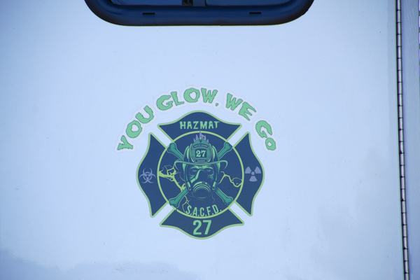 (Hazmat / Communications) 2022 Thor Outlaw. SACFD transformed this motor coach into a fully operation mobile command center and hazardous materials response unit complete with cameras, radios, computers, and weather monitoring systems.