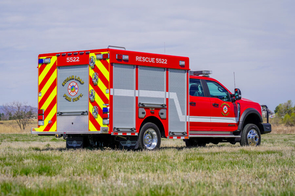 (Engine 2) 1998 HME 1871 4×4 / Darley 1250 GPM pump, 1200 gallon water tank, 1000 GPM deck gun, 2400 gallon porta-pond and20 gallons of foam (CAFS), twin to Engine 5501 at Station 1.