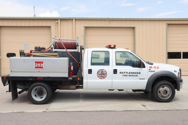 (302) 2005 Ford F-550 4×4 XL Super Duty / Danko Type 6 110 GPM pump, 400 gallon water tank and 12 gallons of foam. Former Brush 52. Shown here with the older graphics.