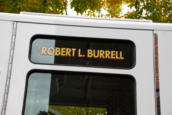 2024 Pierce Velocity (39586) Ascendant 100′ mid-mount heavy duty aerial platform 2000 GPM (Waterous) pump and 300 gallon water tank. Shown here before “Robert L. Burrell” was added.