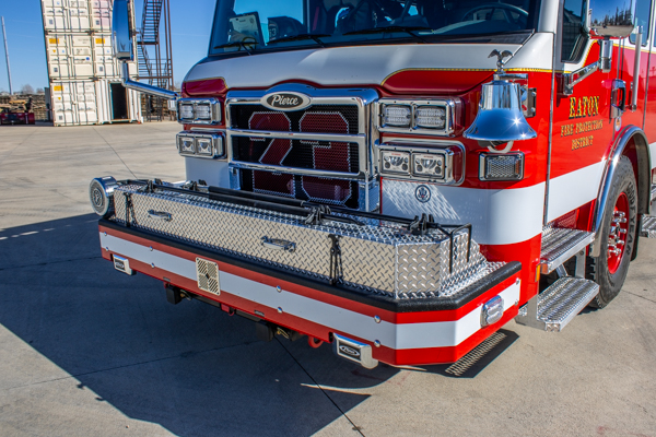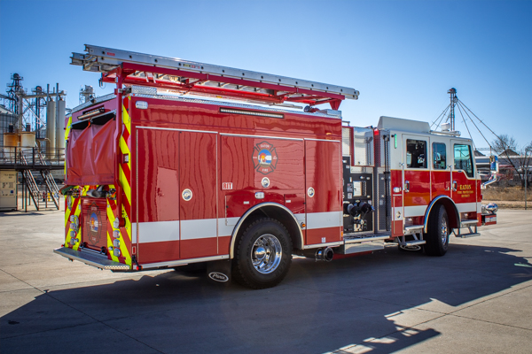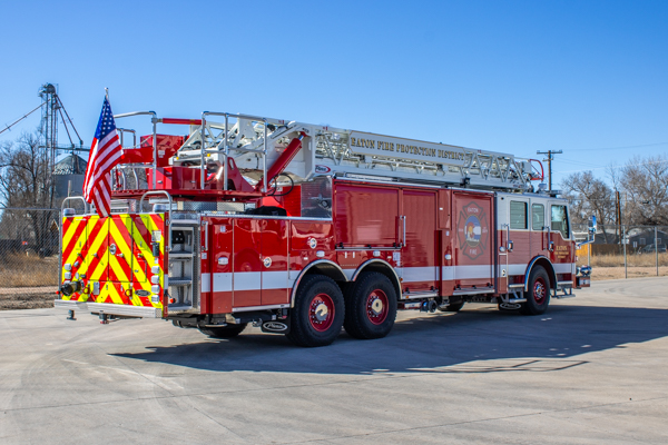2011 Pierce Velocity (#24408) 105′ Rear Mount, 300-gal. Water Tank, 2,250 GPM Hale Pump, Husky Foam System, and Hercules CAFS System. Former Dallas-Fort Worth Airport Quint 15. This apparatus will be replaced at the end of 2025 with a Pierce Aerial.