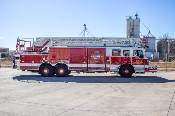 2002 HME 1871 Series / Ferrara (H-2031) / Smeal 75′ rear-mount quint 1500 GPM (Hale QMAX 150) side-mount pump, 400 gallon water tank and 40 gallons of foam. Former Berthoud Fire Protection District (Colorado) Truck 2 and twin to Berthoud Fire Protection District (Colorado) Truck 1. This unit was sold.