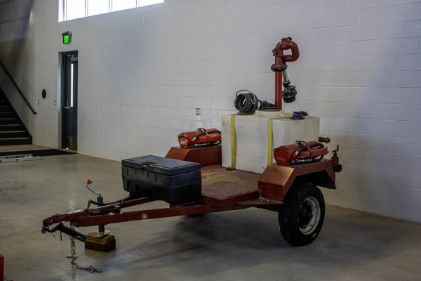 100 gallon tank and 300-pound dry chemical extinguisher and foam nozzle.