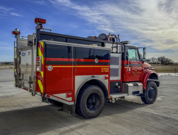 2019 Peterbilt 348 4×4 1000 GPM pump, 3500 gallon water tank and 1500 GPM pump, 200 gallon foam induction, top-mounted deck gun, twin to Tender 2742. Compartment added in 2023 by SVI Refurb.