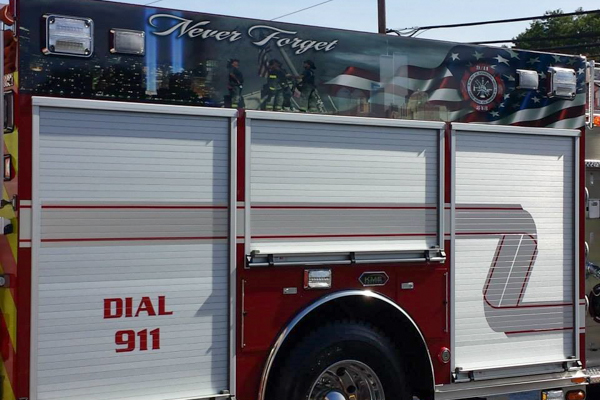 (T-163) 2004 KME Predator (GSO-5761) (Ladder-Tower) AerialCat 95′ mid-mount platform 2000 GPM pump and 300 gallon water tank. Became Truck 1673.