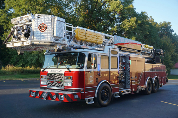 (T-1673) 2022 E-One Typhoon (144261) HP100 (Ladder-Tower) 100′ rear-mount platform 2000 GPM (Hale) pump, 270 gallon water tank and 25 gallons of foam.