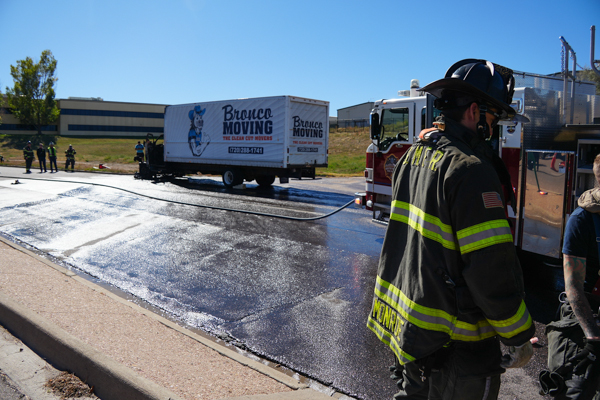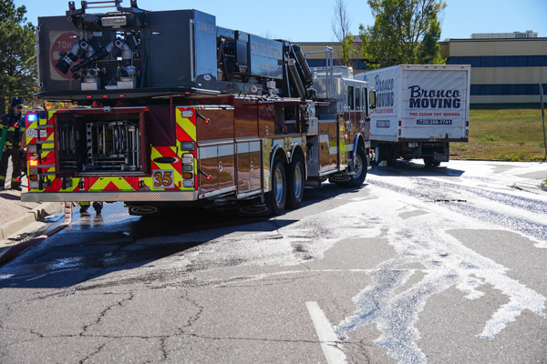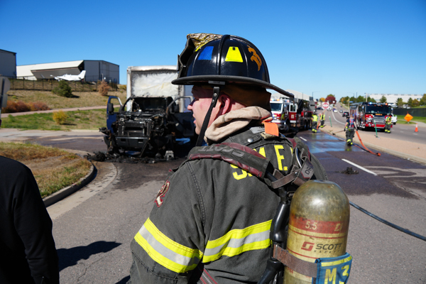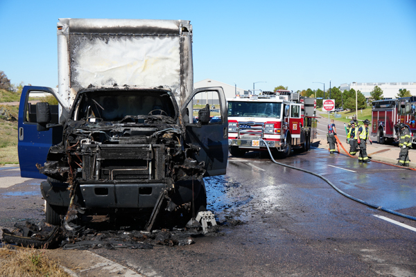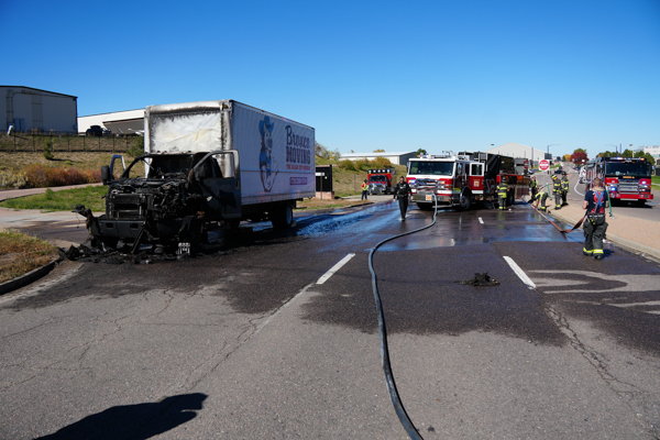 October 17th, 2025 South Metro Fire Rescue responded to a vehicle fire on S. Peoria St. at Alpha Rd. Crews arrived to a moving box truck on fire which was contained to the cab and engine compartment. No hazards and no injuries. The cause of the fire is under investigation. Additional information provided by South Metro Fire Rescue