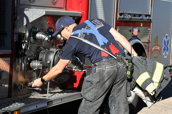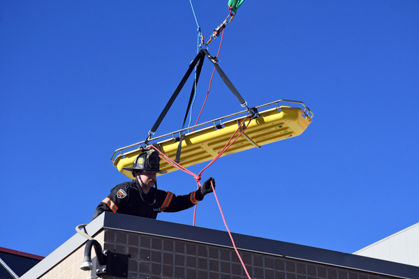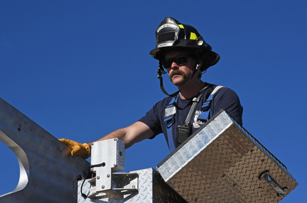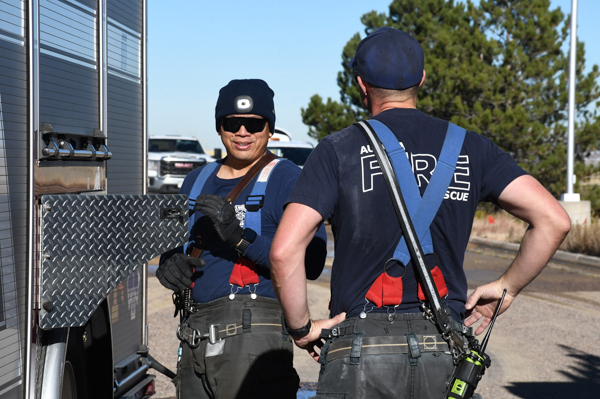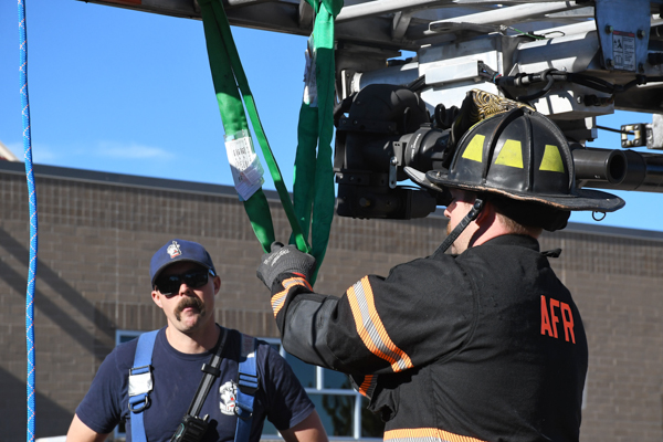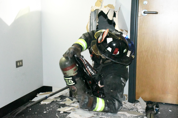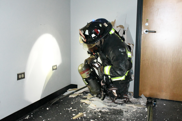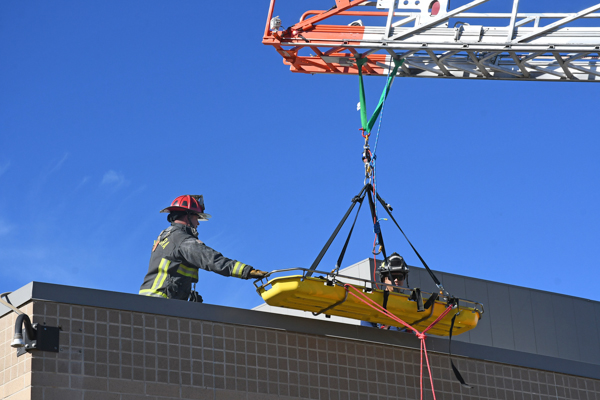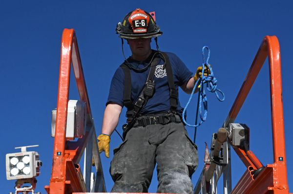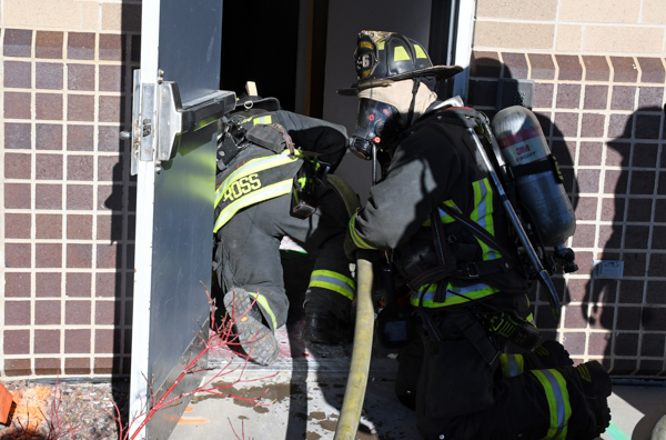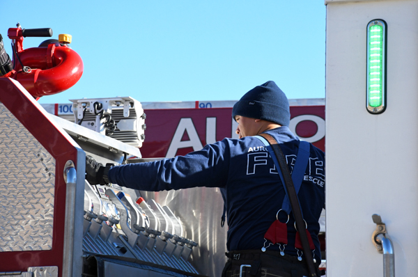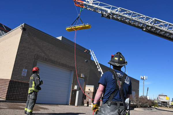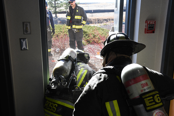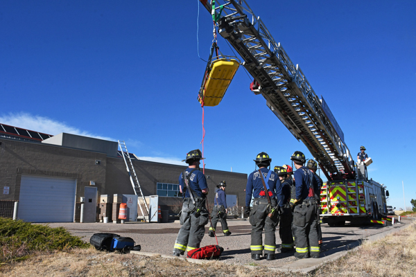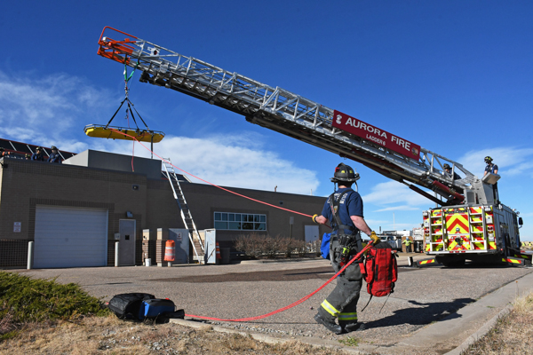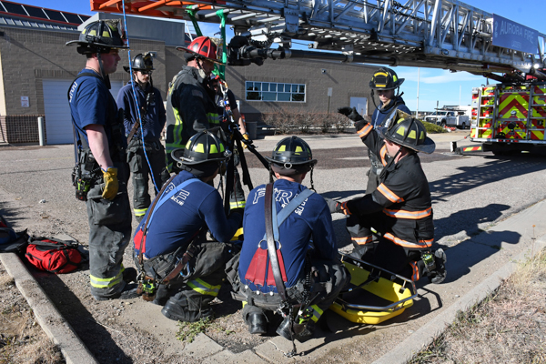 Aurora Fire Rescue conducted multiple training scenarios in the old E-470 administrative building just south of Jewell Ave. on November 24th, 2025. The training consisted of ladder operations, hose maneuvering, wall breaching and high angle rescues using an aerial ladder. AFR has use of the old building for about two weeks before it is slated to be torn down.