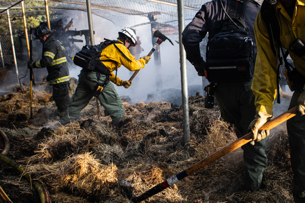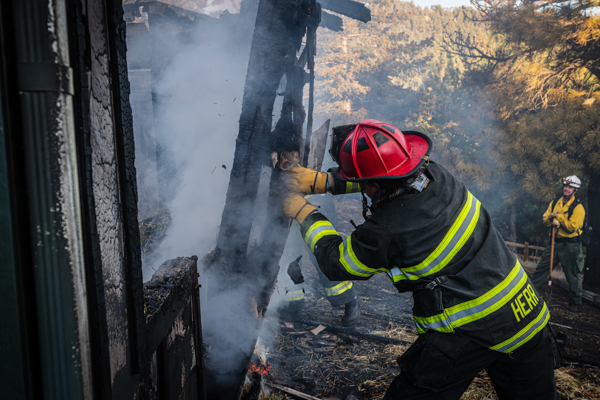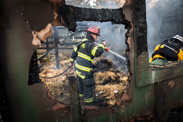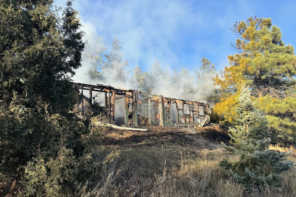 Just after 16:00 on October 29th, 2025 Mountain View Fire Rescue was dispatched to a fire in an outbuilding off the 5000 block of Flagstaff Rd. Engine 210 arrived on scene to a working fire and started fire attack containing the flames to the single structure and protecting the surrounding wildland. The outbuilding served multiple roles, hay storage and it was also home to several cats and rabbits. Boulder Fire Rescue crews saved one of the rabbits, one other has been accounted for and two cats have been accounted for. The caretaker of the property acted quickly and opened the gates, and his hope is that all of the other animals were able to escape. The cause is under investigation and no injuries in the fire. Additional information provided by Chris Rodgers / Code 10 Photography and Mountain View Fire Rescue