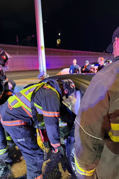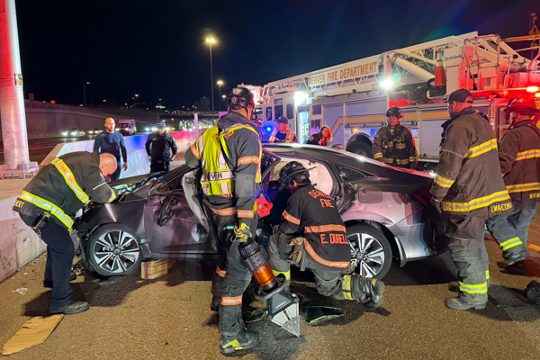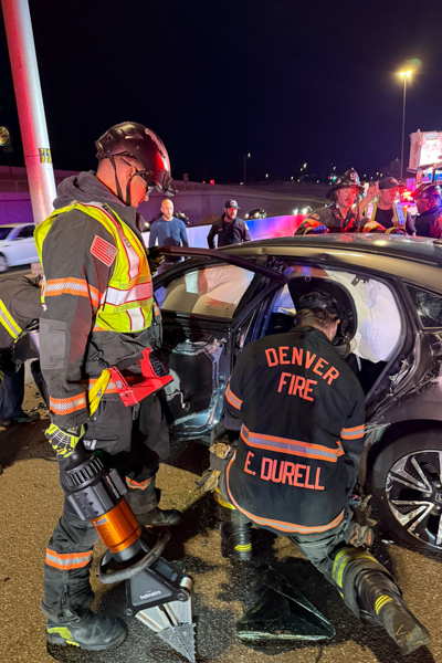 At 19:18 on November 24th, 2025 Denver Fire Department responded to a vehicle accident on I-70 at Steele St. Crews arrived to a two-vehicle accident with a trapped patient and started the extraction. One patient was extricated. One patient was transported to a local hospital with unknown injures. Additional information provided by Denver Fire Department