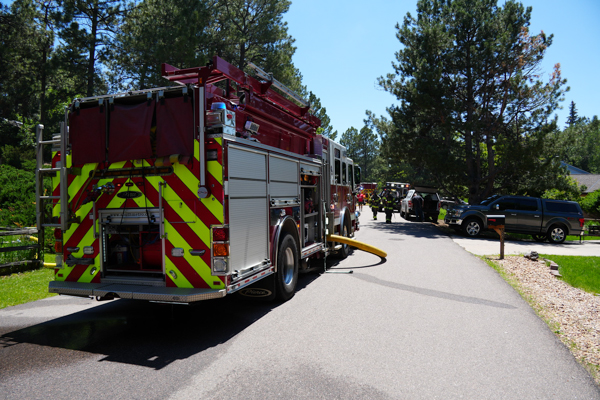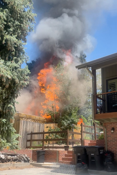 At 12:35 on June 10th, 2025 South Metro Fire Rescue responded to a reported structure fire in the 5800 block of Cantrell Ct. in the Pinery neighborhood of unincorporated Douglas County. Dispatch advised of multiple callers and a possible party inside the house and the call was upgraded the a confirmed residential structure fire. Medic 46 arrived on scene to a large three-story structure with a working fire in the offensive strategy. Engine 43 arrived on the Alpha side of a single-family home and started fire attack with one dog still inside. Engine 46 secured the water supply to Engine 43 and Battalion 4 arrived and assumed command and assigned Medic 41 as medical. Crews worked heavy fire extending from the back patio that spread throughout the structure causing extensive damage. The fire was put under control by 13:21. Medic 41 transported one occupant to a local hospital with unknown injuries. One family dog perished in the fire. A total of 4 adults, 1 cat, 2 dogs, 1 tortoise, 1 iguana, and 1 python were displaced. The cause of the fire is currently undetermined and under investigation by the SMFR Fire Marshal’s Office. Additional information provided by South Metro Fire Rescue