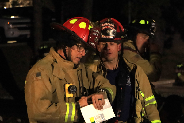 Evergreen/Foothills/Genesee Academy held a training session at Evergreen Fire Station 2 in the evening of October 13th, 2025. The crews trained on water supply, setting up extension ladders, forcible entry, live fire, and other subjects. The joint fire academy is Evergreen Fire Protection District, Foothills Fire Protection District and Genesee Fire Protection District.