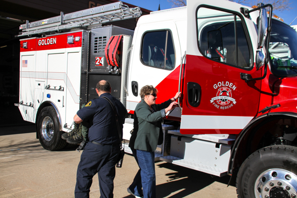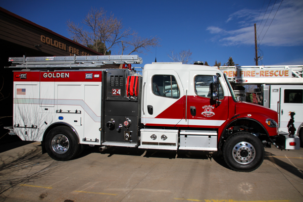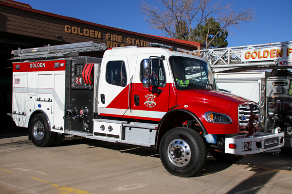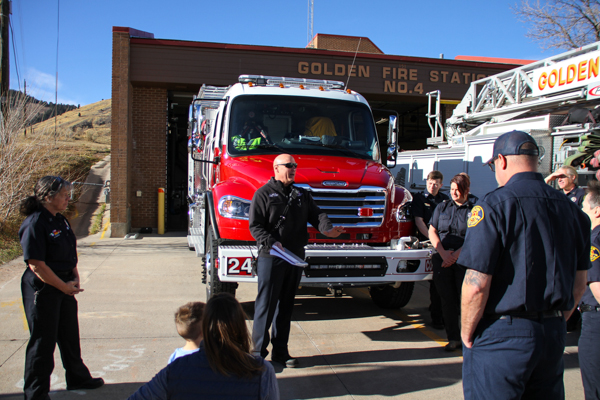 On December 17th, 2025 Golden Fire Department held a traditional “push-in” ceremony for the new Brush Engine 24 at Station 24, 151 Heritage Rd. The event invited the community to help roll in the the new truck into the bay and after snacks with refreshments and information about the future of the fire services in district. Staff was on hand to talk about the fire strategic plan with questions, ideas and priorities for community safety and wildfire preparedness. The new Brush Engine is a 2025 Freightliner M2-106 Plus 4×4 / BME Bighorn with 750 gallons of water and 1250 GPM pump.