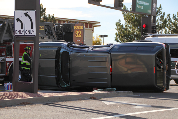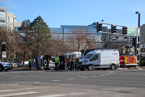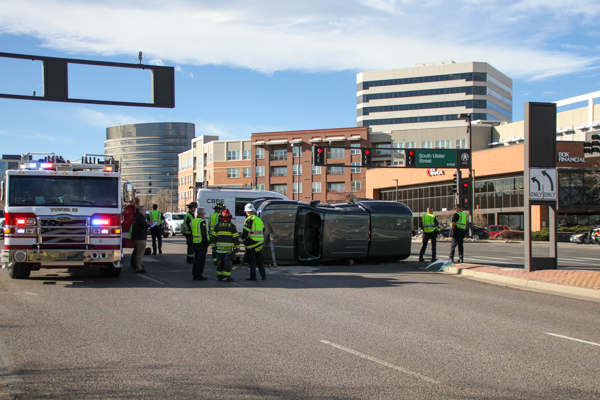 On December 10th, 2025 at 13:27 South Metro Fire Rescue was alerted to a MVA rollover on E. Belleview Ave. at S. Ulster St. in Greenwood Village. Chief 12 arrived to a two-vehicle MVA with one vehicle on it’s side and started checking for injuries. Chief 12 advised dispatch that one party trapped and to start an extrication response. Tower 32 arrived and assigned with stabilizing the vehicle and the extrication. Engine 31 arrived and set-up as traffic safety. Additional information provided by South Metro Fire Rescue