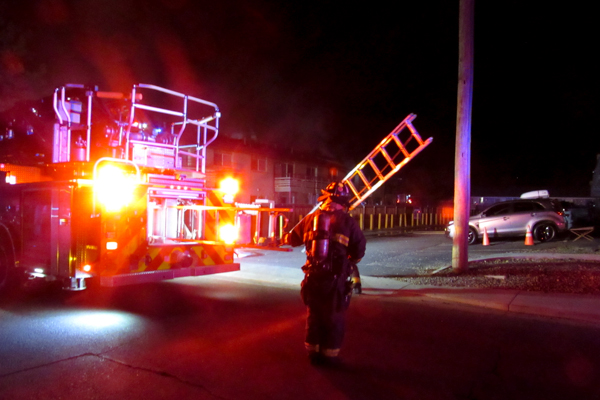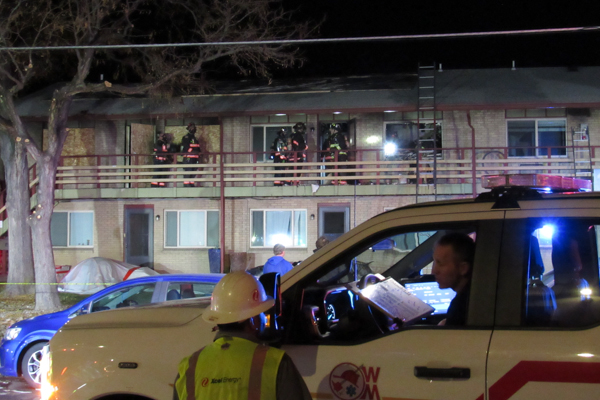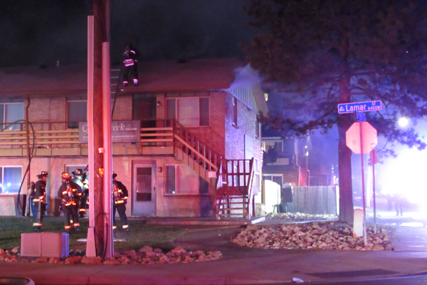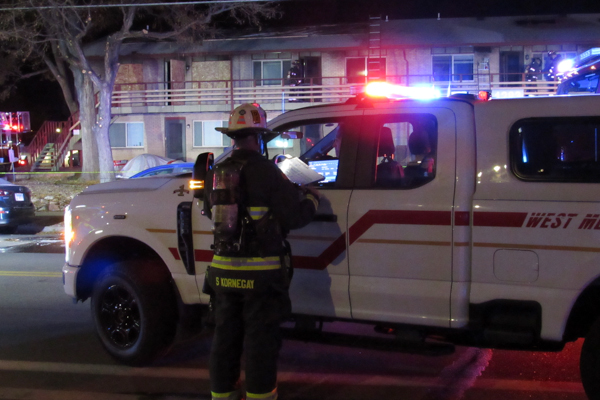 At 21:24 on November 15th, 2025 Jeffcom 911 dispatched West Metro Fire Rescue to a rekindle structure fire in the 6400 block of 13th Ave. in Lakewood. SAM 1 arrived to a medium size two-story apartment complex with a working fire from the Charlie side and Engine 1 arrived and pulled 1 3/4 for fire attack with Medic 1 and Engine 3. Engine 2 started the primary searches and Engine 16 secured the water supply to Engine 1. District 1 assumed command in the offensive strategy and assigned Medic 11 as medical. Tower 2 and Tower 8 both went to the roof for vertical ventilations. The fire was put under control at 21:55 and crews started more overhaul on hot spots. The original fire (Lakewood West 13th Ave Working Apartment Fire) left more than a foot of burned and collapsed debris on the floor of two adjacent apartments with firefighters doing multiple checks before clearing the scene. Firefighters searched the unit visually, overhauled burned material, and used a thermal imaging camera to look for hidden hot spots, as well as, applied additional water to areas of concern. In the hours afterword, crews drove by and stop to check the area again to make sure conditions were still stable. Additional information provided by West Metro Fire Rescue