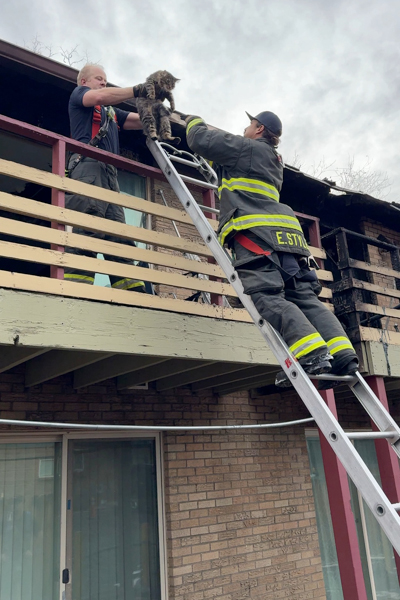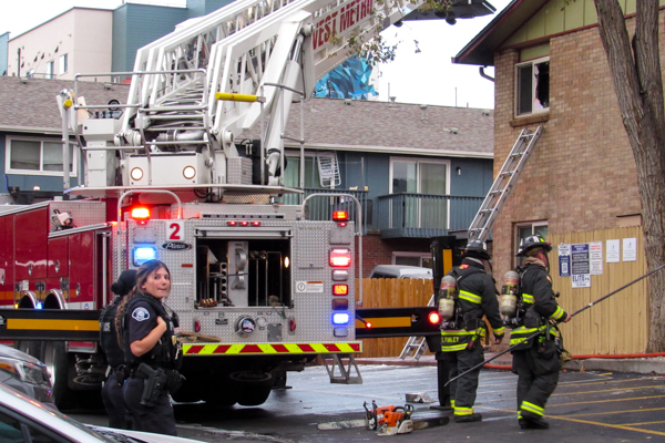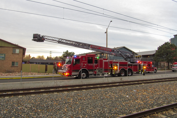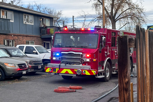 At 06:40 on November 15th, 2025 West Metro Fire Rescue responded to a reported structure fire in the 6400 block of 13th Ave. in Lakewood. Jeffcom 911 received several 911 callers reporting smoke and flames coming from an upper level unit of a apartment building with evacuations. Engine 1 arrived to a medium size two-story apartment complex with a working fire and pulled 1 3/4 line in for fire attack and search with Medic 1. Engine 2 secured the water supply, Engine 16 assisted with the primary search on the 2nd floor and Medic 2 as medical. Engine 3 pulled a 2nd line and Tower 2 went to the roof. District 1 arrived and assumed command in the offensive strategy and requested a additional medic and engine. Firefighters were able to rescue three cats and a bird, but unfortunately one of the cats did not make it. Crews found two of the cats hiding in a closet in one apartment and were able to coax them out. The fire traveled from the deck up into the attic and extended to another second floor apartment. The fire unit had extensive damage, including where the fire burned through the roof. Two units below had water damage, and there is smoke damage throughout the building. Approximately 30 people were displaced and are being assisted by the American Red Cross. The fire was put under control and crews worked an extended overhaul and investigation. WMFR investigators determined that the fire was caused by an unattended space heater on the wood deck of a second floor apartment. A rekindle at the same apartment complex was dispatched later in the evening and crews responded back out, more here: Lakewood West 13th Ave Rekindle Apartment Fire. Additional information provided by West Metro Fire Rescue