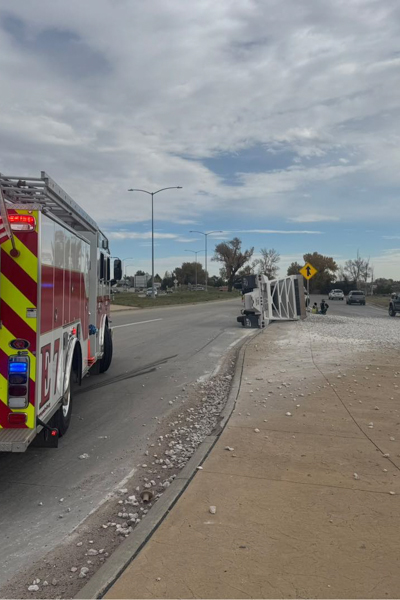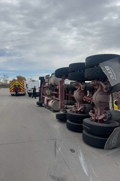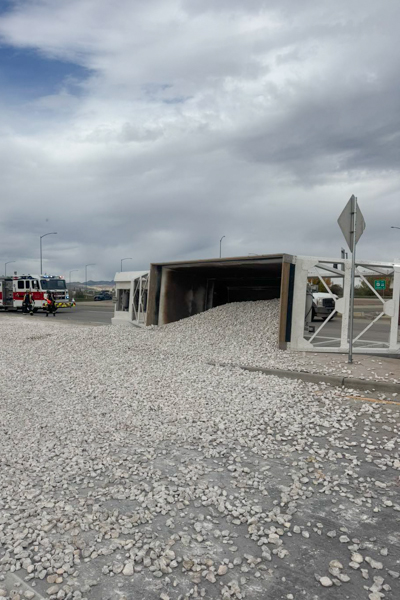 On October 23rd, 2025 around 13:10 Fort Collins 911 dispatched Poudre Fire Authority and UC Health EMS to a rollover accident at the roundabout at Hwy. 287 & W. County Rd. 54G in LaPorte. Engine 7 arrived on scene to find a semi rollover which had spilled a large amount of stone in the roadway. Engine 12 arrived and provided traffic safety. Crews provided medical attention to the driver and cordoned off the area for clean up. Additional information provided by Poudre Fire Authority