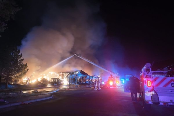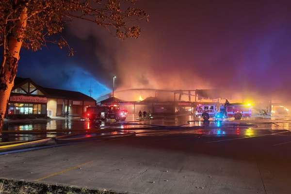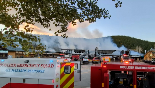 On October 9th, 2025 around 03:40 Boulder County Communications (1800) dispatched Nederland Fire Protection District, Timberline Fire Protection District, Sugar Loaf Fire Protection District and Boulder Emergency Squad to the Caribou Village Shopping Center, 20 Lakeview Drive on a fully involved commercial structure fire. Dispatch advised that Boulder County Sheriff deputy reporting a fully involved structure fire at the strip mall involving the Sheriff’s substation. Command 5650 arrived to a two-story shopping center with a fully involved fire from the 2nd floor and requested to drop second tones for Nederland Fire and begin evacuations of the area. Evacuations were ordered for the surrounding areas, but were lifted later. Engine 5602 arrived and started defensive operations. The fire was put under control approximately 07:11 but crews work throughout the day with hot spots and overhaul. The fire destroyed around 19 businesses including the nature center and the Boulder County Sheriff’s Office substation. The fire did not burn the carousel, the grocery store or the train cars coffee as crews were able to keep fire from spreading to other structures. Evacuation were requested during the fire in the area. No injuries were reported and the cause is under investigation. Additional information provided by Nederland Fire Protection District