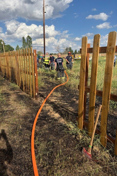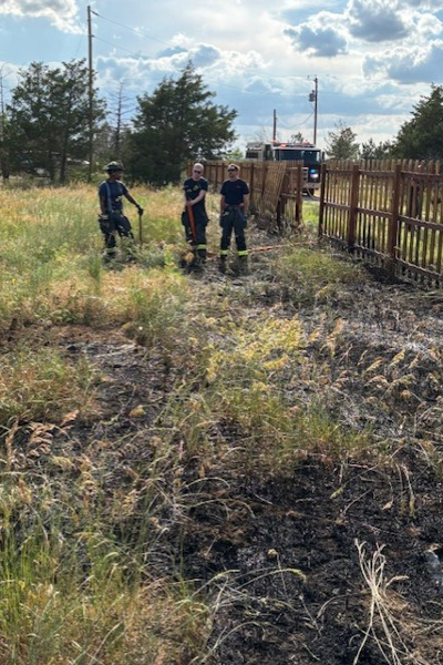 At 17:25 on June 30th, 2025 Strasburg Fire Protection District and Byers Fire Protection District were dispatched to a reported brush fire in the 2900 block of Wagner St. Callers reported a fire at the base of a power pole that was spreading and involving a fence. First arriving Chief 82 sized up a small brush fire spreading laterally along the fence line, The fire was located in a vacant lot that was overgrown with brush with exposures to three sides that were not immediately threatened. Crews made fast work in containing the fire and conducting thorough mop up. Investigation revealed that the fire was caused by a bird that became energized on the pole top transformer that dropped into the dry brush below. CORE Electric responded to remove the remnants of the carcass in the transformer and effect repairs as needed on their equipment. Information and photos provided by Strasburg Fire Protection District