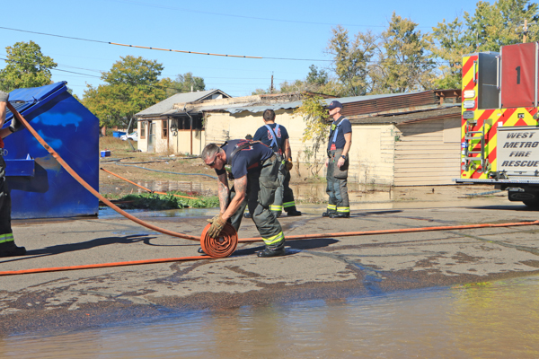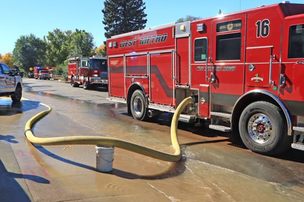 On October 17th, 2025 at 10:36 West Metro Fire Rescue and Arvada Fire Protection District responded to a possible structure fire in the 1400 block of Pierce St. in Lakewood. Jeffcom 911 received several 911 callers reporting smoke and flames showing from a building. Engine 1 arrived to a working fire from a single-story vacant building and pulled a 1 3/4 for fire attack and advised that best access is off Otis St. between W. 14th Ave. and W. Colfax Ave. Engine 16 arrived and secured the water supply to Engine 1 and Tower 2 started the primary search. Engine 3 pulled a 2nd line of Engine 1 to the Alpha side. Crews were able to get the fire under control quickly and start on the overhaul. During incident, a water main broke and crews were also worked on mitigating flooding at a property adjacent to the fire. Water rapidly filled the street and crews used a 5 inch line, as to create a barrier and prevent water from entering the apartment. Consolidated Mutual Water closed the water valve, which supplied water to the broken water main. The fire cause is under investigation and no injuries were reported. Additional information provided by West Metro Fire Rescue