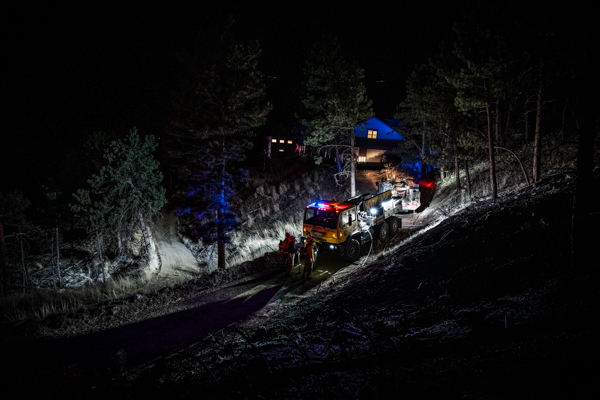 On December 22nd, 2025 at 17:30 Boulder County Communications alerted Four Mile Fire Protection District, Sunshine Fire Protection District, Boulder County Fire Management and Boulder Emergency Squad to a possible grass fire in the area of Four Mile Drive and Logan Mill Rd. during red flag conditions. Crews arrived to a creeping fire on the slop of Wild Turkey Rd. threating structures and mutual-aid was requested with evacuations. The fire was declared contained about 22:30. No structures were lost or damaged in the fire and the cause is under investigation. The fire size was determined to be around 3 acres. Additional information was provided by Sugar Loaf Fire Protection District and Chris Rodgers / Code 10 Photography