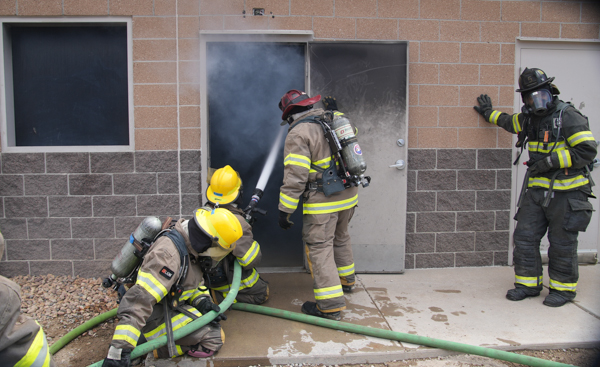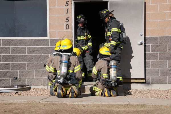 On April 8th, 2026 Adams 12 School Washington Square Fire Science students spent their second day at North Metro Fire Rescue District Fire Academy. The sixteen students worked search & rescue 2nd floor apartment via ladder, search & rescue 1st floor house, hose line advancement to basement, maze afternoon, live basement fires and 2nd floor VES.
