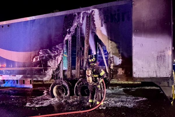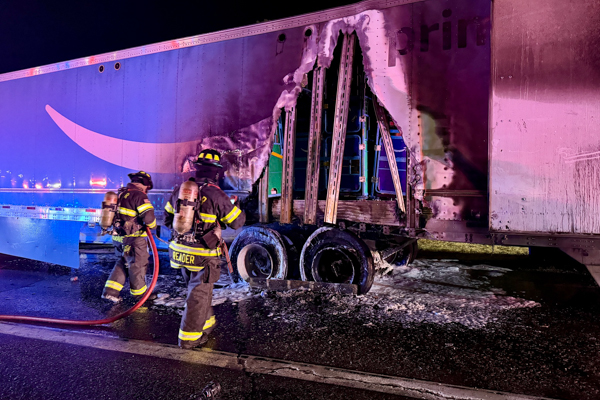 On April 11th, 2026 around 20:45 Adams County Fire Rescue Truck 11 was dispatched to a vehicle fire on the on ramp to W. 84th Ave. from northbound I-25. Adcom 911 advised that multiple callers reporting fully involved and the call was upgraded. Truck 11 arrived on scene to a working fire from a Amazon trailer and not the cab of the semi and pulled a line in fire control. Engine 11 arrived and supplied the water supply to Truck 11. Crews had to force entry to the back of the trailer and the fire reached the exterior side of the trailer and burnt through the metal, catching some of the boxes on fire inside the truck. Crews located the main body of fire which was extinguished and crews started an extended overhaul by pulling containers out of the trailer. The driver was not injured and the cause is under investigation. Additional information provided by Adams County Fire Rescue