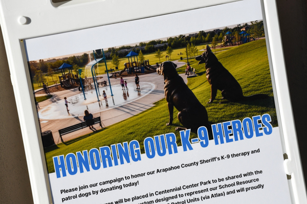 Colonna’s Pizza & Pasta, 7475 East Arapahoe Road in Centennial, hosted Dine for the Dogs on February 26th, 2026 to benefit the Arapahoe County Sheriff’s Office and Back the Blue K-9 Force. A portion of the evening’s proceeds went to help local police and therapy dogs. Back the Blue uses donated funds to provide protective vests, bite suits, explosive magazines for vehicles, E-collars and other equipment. Donations may be made on their website at www.backthebluek-9force.com.