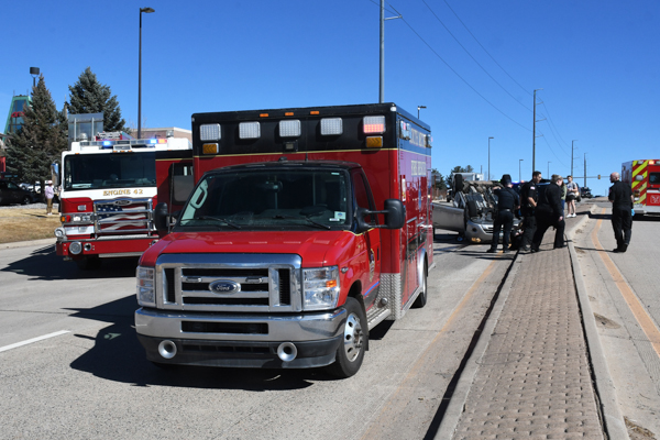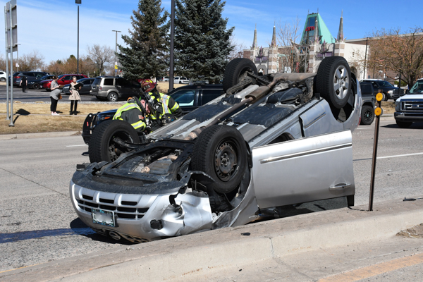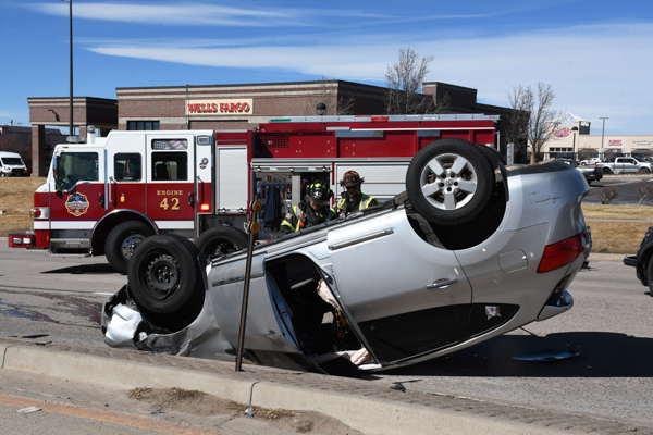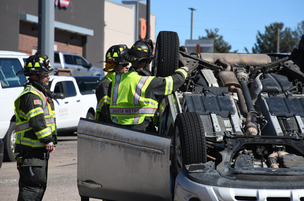 On March 9th, 2026 South Metro Fire Rescue and Aurora Fire Rescue were dispatched to a rollover accident on E. Arapahoe Rd. just east of S. Parker Rd. near the Arapahoe Crossing Shopping Plaza. Firefighters arrived on scene to find a two-vehicle MVA. One vehicle came to rest upon its top in the roadway. Crews were on scene about thirty minutes rendering aid and neutralizing hazards. One person was transported by ambulance to a local hospital for evaluation. The cause of the crash is under investigation.