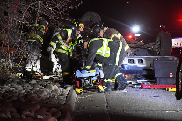 On February 12th, 2026 at approximately 23:30 South Metro Fire Rescue was dispatched to a reported rollover MVA on S. Himalaya St. just north of E. Progress Circle. Engine 23 arrived on scene and found a passenger vehicle on its roof on the west side of the road. Firefighters extricated one person from the vehicle who was transported by ambulance to a local hospital. The Arapahoe County Sheriff’s Office is investigating the accident.