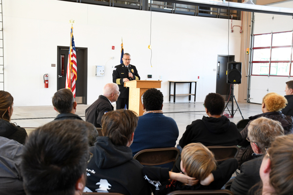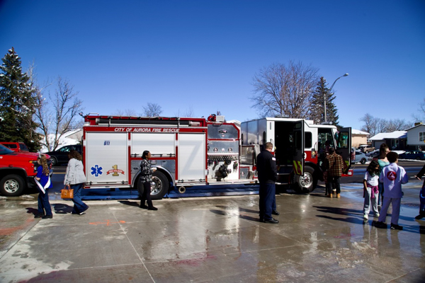 Aurora Fire Rescue celebrated the grand opening during the ribbon cutting ceremony of the new Station 9 at 17200 E. Mexico Ave. on March 7th, 2026. The event featured a dedication ceremony with a blessing, remarks by various dignitaries, a fire hose uncoupling, ceremonial posting of the first colors of the flag pole, a dedication of the new public art addition on display in front of the station, ribbon cutting, station tours and cake. The public was able to meet with Aurora firefighters and checked out both new and historic fire apparatus. The original 1979 fire station was demolished in March of 2025. The two-story, 12,000-square-foot new station features 11 dorm rooms, eight bathrooms, a fitness room, a double-length three-bay apparatus bay, and an open floor plan combining a kitchen, dining area and a day room.
