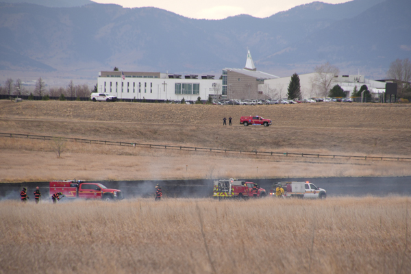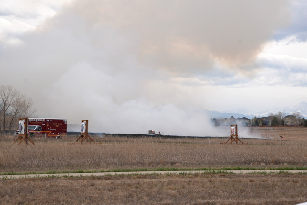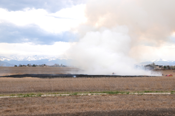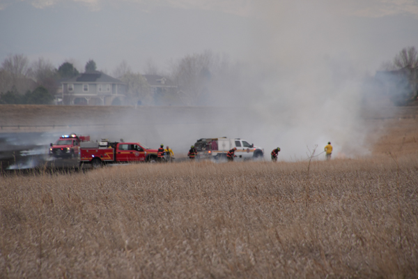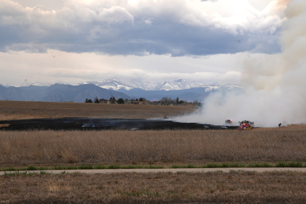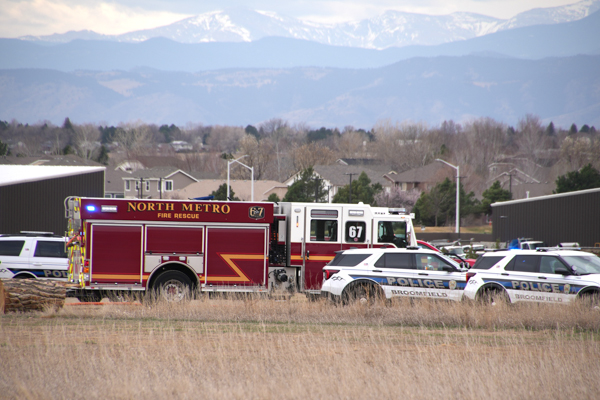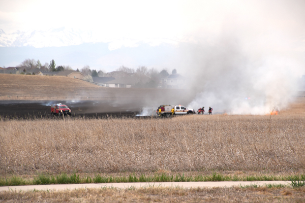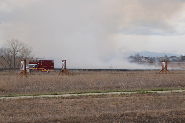 On March 23rd, 2026 around 14:30 Broomfield Public Safety Communications Center dispatched North Metro Fire Rescue District to a reported field fire in the area of Lowell Blvd. and W. 144th Ave. in Broomfield. Engine 64 arrived to a small active grass fire in flat terrain with a slow rate of spread just west of the Broomfield Remote Control Drone Airfield Park off Lowell Blvd. and started direct attack on the fire. The wind increased causing the fire to grow quickly and a requested was made for additional brush trucks to the scene. Battalion 62 arrived and requested a major incident tone and made a request for a pre-evacuation notice for the Wildgrass, Eagle River Run and Silverleaf neighborhoods including the Holy Family High School, Broomfield Water Treatment Plant and the Broomfield City Shops. Engine 63 arrived and laid a supply line from the hydrant on Lowell Blvd. Crews were able to quickly contain the fire and mop up in about an hour. Broomfield Police Department closed down Lowell Blvd. north of from W. 144th Ave. up to W. 149th Ave. during the incident. No injuries were reported and the cause of the fire was determined to be accidental and human caused. An individual using model rockets in dry grass sparked the fire. Additional information provided by North metro Fire Rescue District