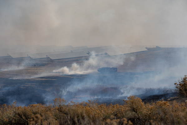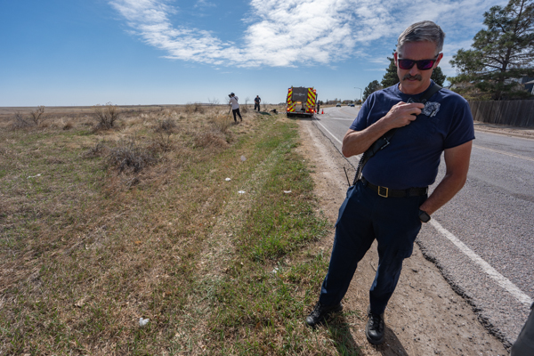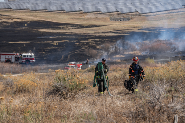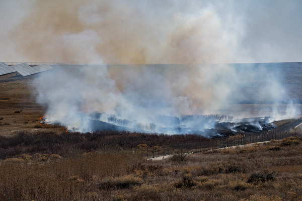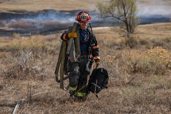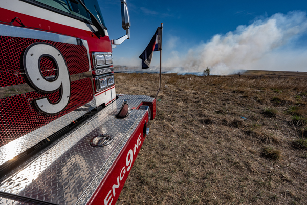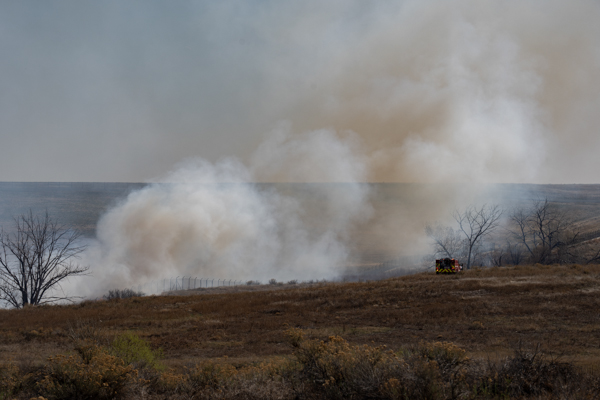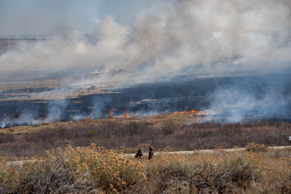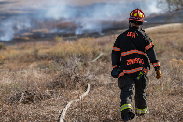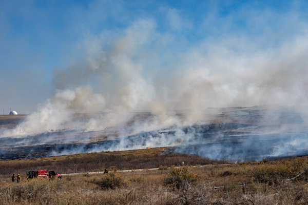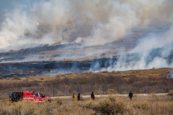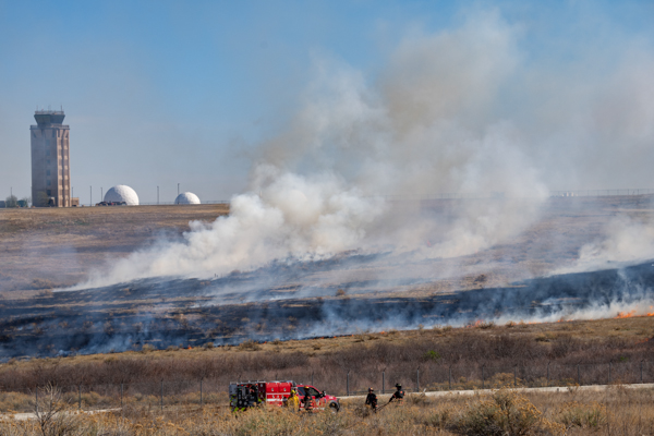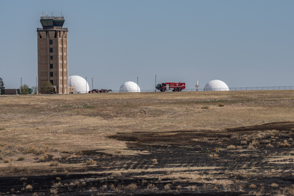 Just before 09:30 on March 29th, 2026 Aurora Fire Rescue was dispatched to the area of E. Mississippi Ave. and E. Ceylon St. for reports of grass fires burning nearby. While enroute, a large plume of smoke was widely visible. Upon arrival, Battalion Chief 4 observe Buckley Space Force Fire & Emergency Services Firefighters working to control vegetation fires inside of base property, and two small fires burning on City of Aurora property. Engine 9 and Brush 8 began direct attack and quickly contained both fires. Additional Aurora crews positioned along the base perimeter fence and protected the adjacent vegetation from igniting. A mutual-aid brush truck from Sable Altura Fire Rescue also responded. Buckley Crash 1, Crash 2 and Crash 3 conduced mobile direct attack on multiple flame fronts. Engine 1 and Tender 8 provided water supply and advanced lines for fire suppression, and Engine 2’s 4×4 was used for mop up in the heavier fuels. During the incident no structures were threatened in Aurora, no injuries occurred, and no emergency phone notifications were needed. The incident was under control at 10:45 and with no further threat of the fire spreading into Aurora, AFR crews were released by Buckley command. Buckley Space Force Base is leading the investigation. Additional information provided by Aurora Fire Rescue
