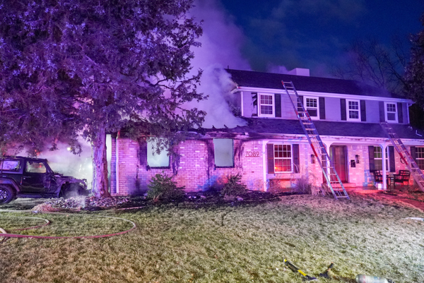 At 06:10 on January 17th, 2026 South Metro Fire Rescue responded to a reported structure fire in the 7000 block of S. Columbine Way in Cherry Knolls. South Metro Fire Dispatch advised of active fire in the garage of the home and the call was upgraded to a confirmed structure fire response. Engine 14 arrived to a two-story single-family residential with fire in the garage and pulled a 2 1/2 for fire attack. Reports of the family may be possibly trapped inside and District Chief 1 requested a 2nd alarm. Tower 32 arrived and assigned with the primary search with Medic 15. Engine 15 secured the water supply to Engine 14 and Medic 17 pulled 1 3/4 from Engine 14 to the front door. Battalion 2 arrived and assumed command and confirmed that no one was home and with all the searches clear, the 2nd alarm was cancelled. The fire extended into the home from the garage including the basement and the 2nd floor. The fire was put under control at 06:36 and crews worked an extensive overhaul. While searching the home, one cat was located inside which did not survive. No injuries were reported and the cause of the fire is under investigation by the SMFR Fire Marshal’s Office. Additional information provided by South Metro Fire Rescue