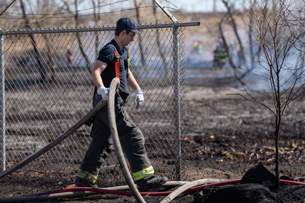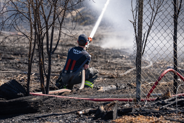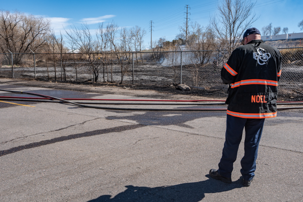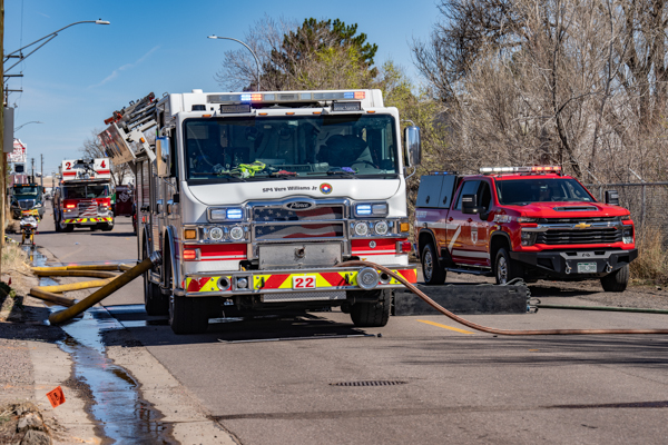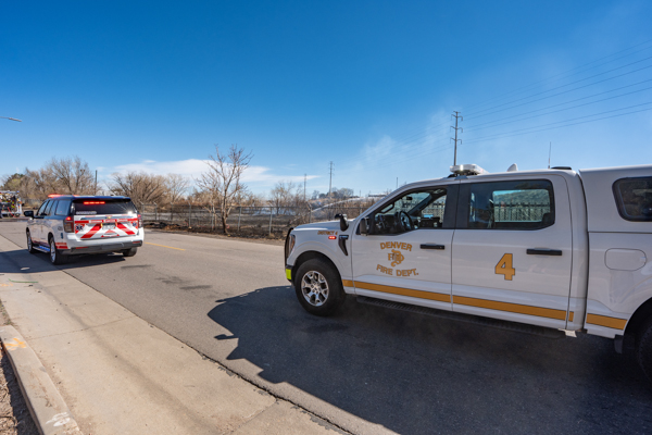 Around 13:45 on March 21st, 2026 Denver Fire Department Engine 9 was dispatched to a trash or weed fire near E. 48th Ave. and Monaco St. While enroute on I-70, a large plume of black smoke was visible. At the same time, South Adams County Fire Department and Adams County Fire Rescue were dispatched to a structure fire in the same area. First arriving Engine 9 spotted on a hydrant and stretched an attack line through a chain link fence on the south side of E. 48th Ave. where a large vegetation fire was burning in grass, cattails, and heavy timber. South Adams Engine 22 established a water supply at E. 48th & Monaco St. and Denver Engine 26 established a third water supply on E. 48th just west of the railroad tracks. Companies worked for nearly 45 minutes to bring the fire under control. No injuries occurred and no structures were threatened.