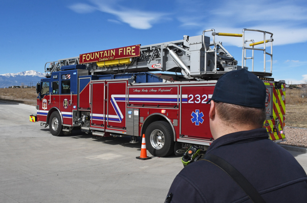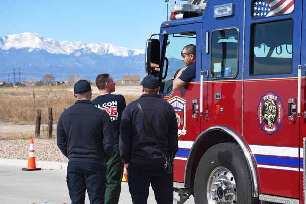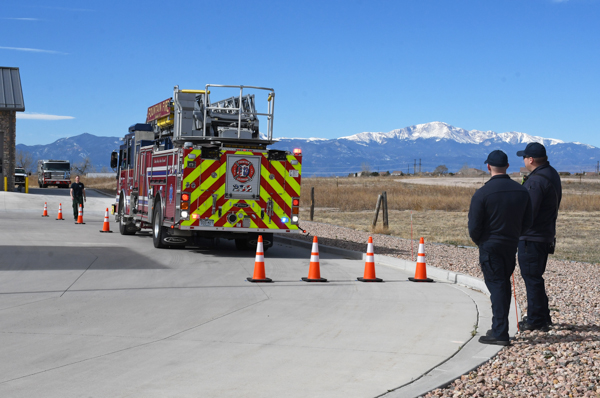 The Falcon Fire Protection District conducted driver training at Station 3 in Falcon on March 14th, 2026. The Department is expecting delivery of a new Rosenbauer ladder truck and took the opportunity to put several crew members through some training in preparation for an upcoming practical exam. The Fountain Fire Protection District loaned Ladder 232 to Falcon for use during this training.