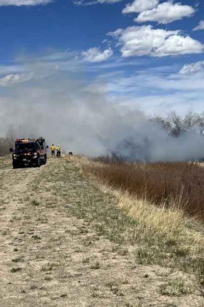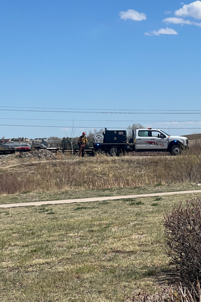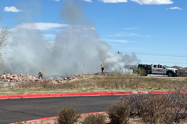 On April 6th, 2026 around 13:45 Falcon Fire Protection District was dispatched to reported outside fire in the area of Hwy. 24 and Woodman Rd. Upon arrival, crews found fire activity just east of the intersection, burning in the ditch along Highway 24 and moving from west to northwest. The fire was contained to approximately 0.66 acres and compromised the footbridge on the Rock Island Trail. The cause of the fire is undetermined, but it does not appear to be intentional. Additional information provided by the Falcon Fire Protection District.