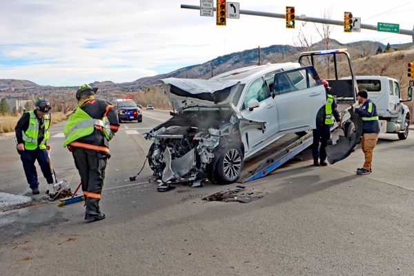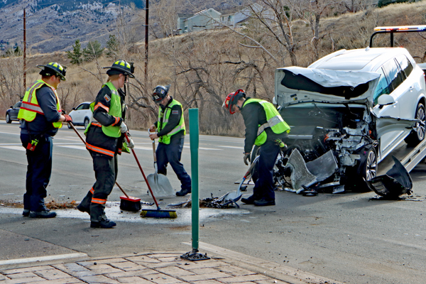 On January 20th, 2026 at 14:22 Golden Fire Department and Stadium Medical was dispatched to a motor vehicle collision on Hwy. 93 at N. Washington St. Tower 21 arrived to a two-vehicle head-on accident in the intersection with major damage and started in the investigation. Two adults and two children were evaluated at the scene and released. Both vehicles received heavy damage and required to be towed from the scene. All northbound Hwy. 93 traffic was diverted to eastbound Iowa Drive while southbound traffic was merged down to one lane and guided through the intersection. Both north and south bound traffic on Hwy. 93 encountered more than a mile backup in each direction. The cause of the accident is under investigation. Additional information provided by Golden Fire Department