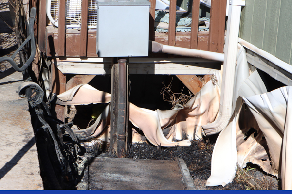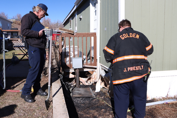 On January 15th, 2026 at 11:45 Golden Fire Department and Pleasant View Fire Department was dispatched to a possible grass fire at 300 La Veta Pass Ave. in the Dakota Ridge RV Park in Golden. Battalion 21 arrived to a small smoldering with no active fire between two mobile homes and the rest of the response was cancelled. The home owner explained that he smelled burning plastic, and went outside to investigate. He found a small patch of grass burning right next to his rented trailer, which had also burned a plastic automobile radiator and a child’s bicycle, then succeeded to put out the fire with a fire extinguisher. Crews did not apply water and only provided a visual investigation, until an investigator could arrive and review the scene. Once the investigation was completed, water was applied to the area by Engine 41. The fire department praised the renter for his quick actions, as high wind speeds could have fanned the flames and spread to other homes, that were slightly below his. The cause of the fire was not determined. Additional information provided by the Golden Fire Department