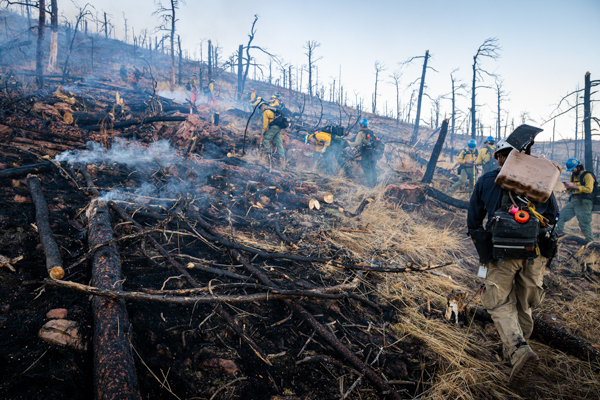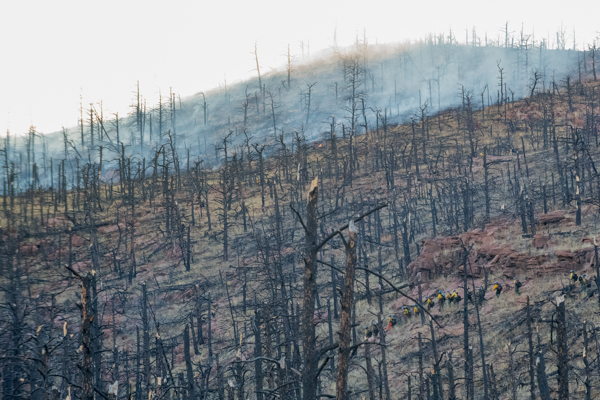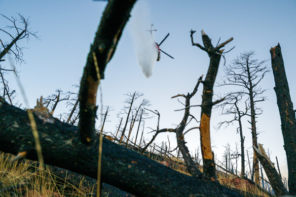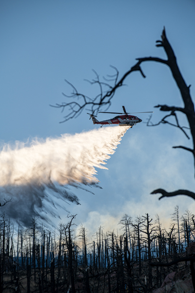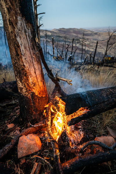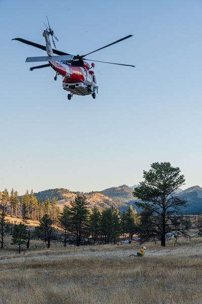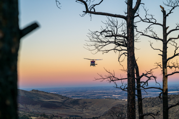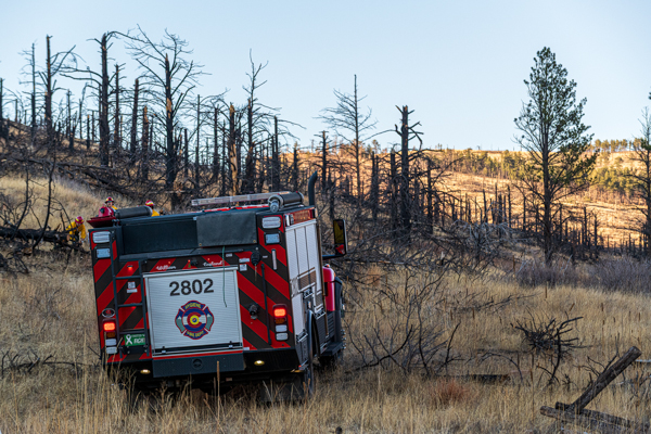 On March 4th. 2026 at 15:16 Boulder County Communications received several 911 calls reporting smoke in the area of the Heil Valley Ranch. Command 4161 arrived on scene to a wildland fire within the 2020 Calwood Fire burn scar. Crews worked a slow creeping wildland fire in steep terrain and the DFPC Firehawk responed and dropped water on the fire. The fire was contained around 20:00 and crews strayed overnight into the next day to monitor the fire for hot spots. The fire burned 7.6 acres.