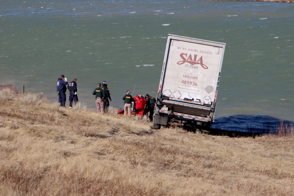 West Metro Semi Into Water