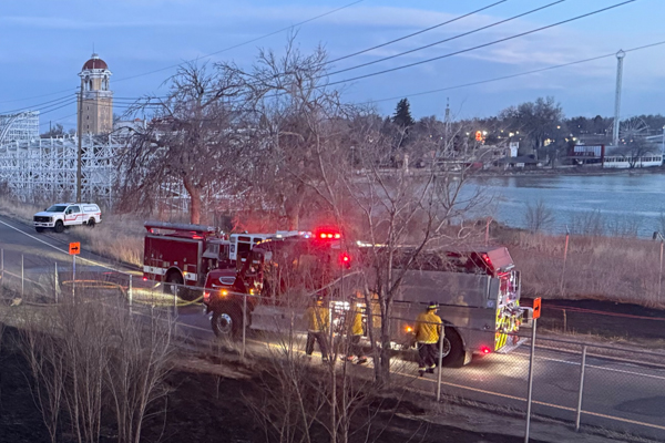 On March 14th, 2026 at 18:26 Jeffcom 911 dispatched West Metro Fire Rescue Engine 16 to a reported vegetation fire off I-70 on Lakeside Lane between Harlan St. and Sheridan Blvd. on a Red Flag Warning day. Engine 16 arrived to a small vegetation fire with multiple trees on fire and pulled 1 3/4 for fire attack and requested additional units to the scene as the fire was quickly extending east towards the amusement park fence line. District 1 arrived and assumed Lakeside command and requested Tender 6 to the scene with no hydrants along the stretch of the road. Denver Engine 17 arrived and started fire attack on Lakeside Lane by Sheridan Blvd. with West Metro Engine 17. Denver Engine 7 worked fire attack on I-70 with a line and Brush 5 from the Harlan St. on ramp. Crews worked the fire in strong winds, dry fuels, and heavy smoke reducing visibility for traffic in both directions of I-70. The fire was quickly controlled from spreading onto the grounds of the Lakeside Amusement Park and crews worked an extended overhaul on hot spots. The fire burned about two acres and the cause is under investigation. Additional information proved by West Metro Fire Rescue